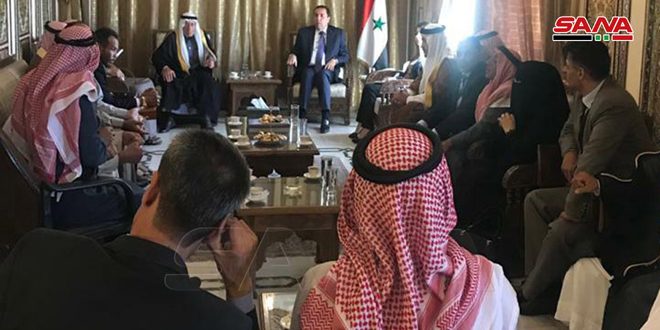 The delegation’s members said in a statement released following their meeting with Charge d’Affaires of the Syrian Embassy in Amman Shafiq Dayoub that they were forced to leave Syria because of the crimes of terrorist organizations, which kidnapped and killed their sons and destroyed their homes.
