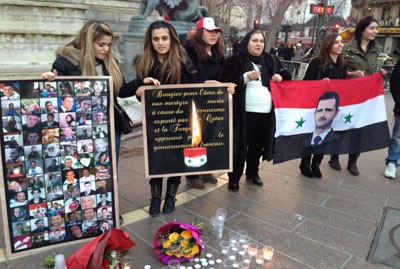 In St.Michel Square in Paris, the participants held Syrian flags and pictures of President Bashar al-Assad and a banner including photos of some Syrians martyred by the armed terrorist groups in recent events.