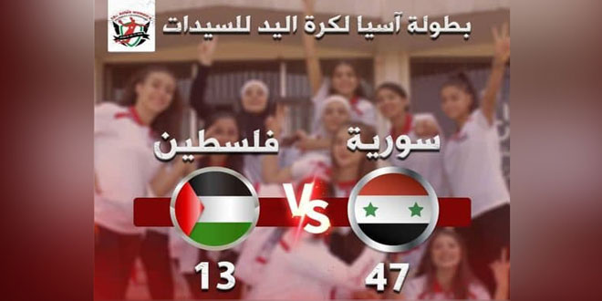AMMAN, (ST)_ The Syrian women’s handball team beats its Palestinian counterpart 13-47 in the Asian Women’s Handball Championship, which is being held in Amman from 15 to 25 September 2021.