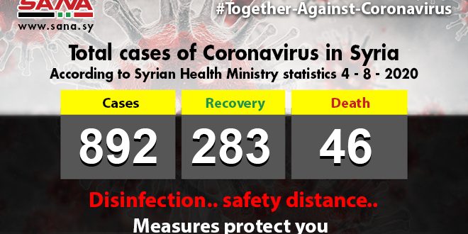 DAMASCUS, (ST)_Health Ministry has announced that 45 new Coronavirus cases have been reported in Syria and 15 patients have recovered.