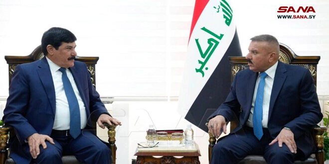 The Iraqi Interior Minister Abdul Amir Al-Shammari and Syrian ambassador to Baghdad Sattam Jadaan Al-Dandah discussed ways to develop and strengthen bilateral cooperation relations.