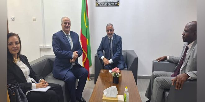 Mauritanian Minister of Equipment and Transport, Mohamed Ali Ould Sidi Mohamed, discussed with the Syrian Ambassador in Nouakchott, Kusay Mustafa, bilateral relations and ways of bilateral cooperation.