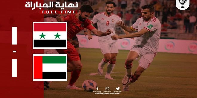 The Syrian national football team tied with its UAE counterpart 1-1 in world Cup qualifiers of Qatar 2022 , at al-Quweismeh Stadium in Jordan.