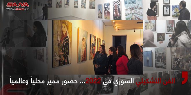 The year 2022 witnessed joint exhibitions between Syria and friendly countries that brought together humanitarian issues on artistic paintings, in which the concerns of the peoples of the world emerged. The paintings toured around the world to present the civilized face of Syria with all the expressive colors of plastic art.
