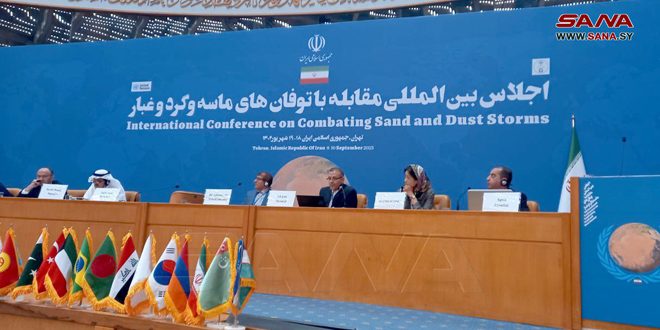 With the participation of Syria, the International Conference on Combating Sand and Dust Storms continued its activities today in the Iranian capital, Tehran, and the Syrian delegation gave a presentation on these storms in Syria.