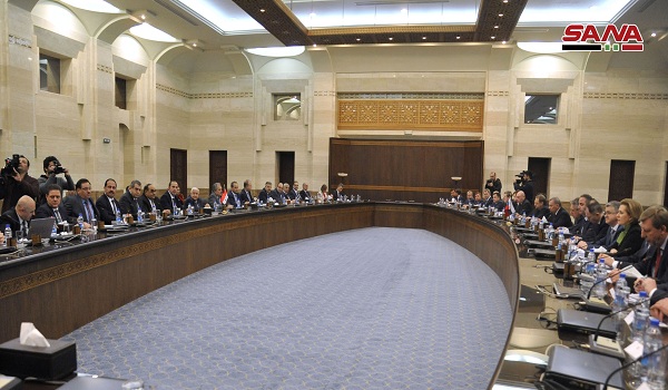 DAMASCUS-The Russian-Syrian Inter-Governmental Commission on Trade, Economic, Scientific and Technical Cooperation held Thursday an expanded meeting at the Cabinet HQ, co-chaired by Deputy Prime Minister, Foreign and Expatriates Minister Walid al-Moallem for the Syrian side and Deputy Prime Minister of the Russian Federation Yury Borisov for Russian side, according to SANA.