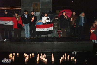 Participants in the event, which took place in Albertine in Brussels, lit candles in honor of the martyrs, followed by a moment of silence and speeches were delivered to reveal what is going in Syria