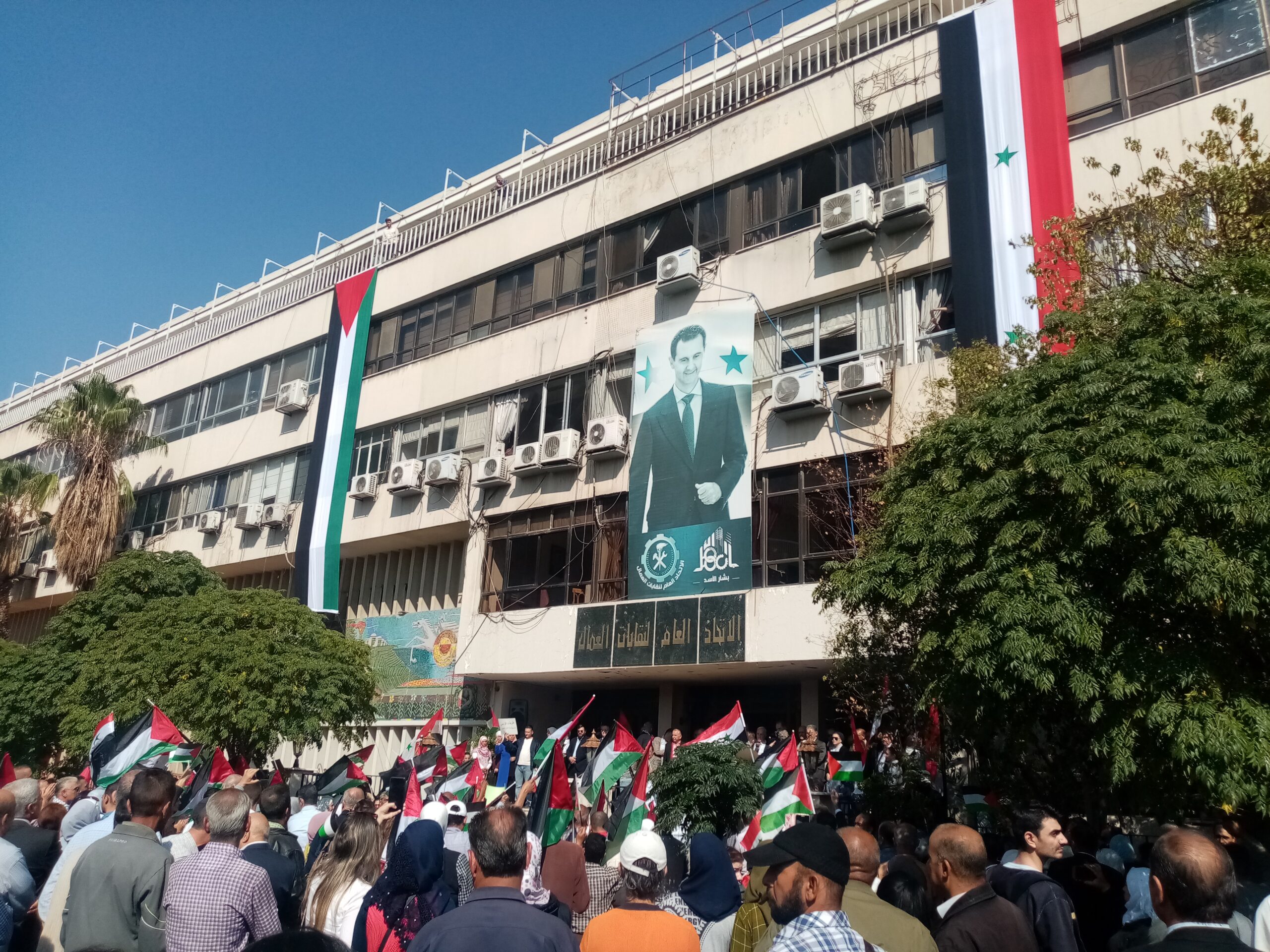 Syrian Trade Unions in a solidarity stand with the Palestinians 10 Photos from Syria On Oct 19, 2023 smart Share Share FacebookTwitterWhatsAppEmail