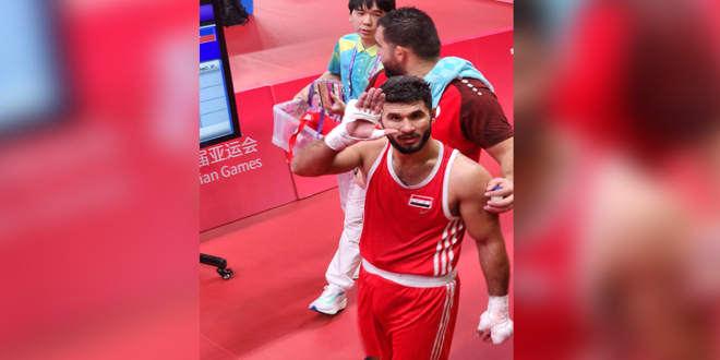 The Syrian national boxing team player Ahmed Ghosoun won the bronze medal of the 80 kg competition at the 19th Asian Games currently being held in the Chinese city of Khanzhou.