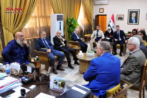 Damascus, (ST) – Minister of Education Darem Tabbaa met on Wednesday with the delegation of the European Front for Defending Syria and the Italian Casa Pound Party at the Ministry’s building in Damascus.
