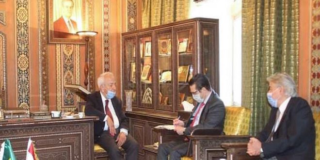 Damascus (ST): Re-formation and activation of the Syrian-Brazilian Businessmen Council and encouraging businessmen in the two countries to establish investment and trade partnerships and increase the volume of trade exchange were the most important axes of the meeting of the President of the Federation of Syrian Chambers of Commerce Mohammad Abu Al-Huda Al-Lahham with the Brazilian Ambassador in Damascus Fabio Vaz Petaluka at the headquarters of the Damascus Chamber of Commerce.