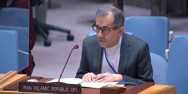 Iranian Ambassador and Permanent Representative to the United Nations Majid Takht Ravanchi said in a speech before a meeting of the UN Security Council yesterday evening, “The crisis in Syria cannot be resolved without ending the occupation and uprooting terrorist threats, and it is not possible to endanger Syria’s sovereignty and territorial integrity under the pretext of fighting terrorism. The illegal occupation, including the American forces, must leave this country immediately and without any restrictions or conditions.”