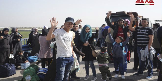 DARAA, (ST)- More batches of displaced Syrians continue to return from al-Azraq camp in Jordan to their original areas of residence in Syria after the Syrian Arab army had liberated their towns and villages from terrorism and restored security and stability there, thereby preparing suitable environment for the return of thousands of Syrians who fled the crimes of terrorist organizations.