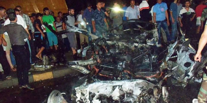 The agency quoted a source in the city of Homs as saying that terrorists exploded a car bomb at the traffic light on a road linking al-Zahraa and al-Mowasalat quarters, killing one person and wounding 21 others.