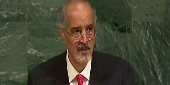 NEW YORK, (ST)- Syria’s Permanent Representative to the United Nations Bashar Al-Jaafari has stressed that terrorism would have been eliminated and the danger of the return of foreign terrorists to their homelands would have been averted if the international community have responded to Syria’s complaints over the past seven years about the involvement of some governments and intelligence bodies in the flow of foreign terrorists from more than 100 countries into Syria and Iraq.