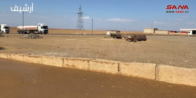 Local sources said that a convoy of 50 vehicles, mostly tankers loaded with stolen oil, and a number of trucks loaded with artillery and military equipment, accompanied by 8 military armored vehicles of the American occupation forces, headed today from Tal Khamis area in the eastern countryside of Hasaka to Kharab al-Jir airport in the town of al-Yarubiyah.