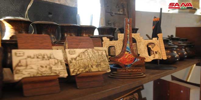 Damascus (ST): The exhibition of antiques and heritage was opened in Dummar Central Incubator for Traditional Arts of the General Union of Craftsmen in Damascus, entitled “Syria, History and Civilization.” It will last for ten days. The exhibition included several pavilions containing places for displaying the products of traditional craftsmen, such as the extraction of perfumes, tanning, folk crafts, inlaying on wood, inlaying copper, old handicrafts of straw, natural silk, embroideries, handbags, wooden musical instruments, leather, pottery, medicinal herbs, and various products of clothing produced by a special section in the incubator in which the wounded army members work.
