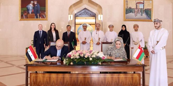 The signing ceremony was attended by the Syrian Ambassador to the Sultanate of Oman, Dr. Idris Maya, and the Ambassador of the Sultanate of Oman to Damascus, Turki Al-Busaidi.
