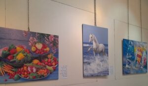 The exhibition displayed about 23beautiful artistic medium and small wall paintings all of them made from Puzzle pieces. Some of them consist of five hundred pieces and the large ones consist of thirteen thousand pieces.
