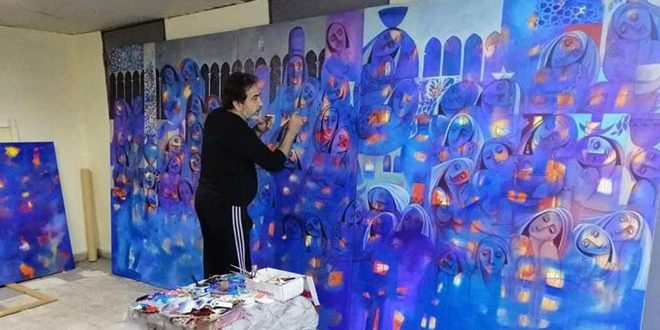 Hattab sought through these paintings to show that Syria is in his heart and the heart of every expatriate artist who is loving and loyal to it, as he explained in an interview with SANA.