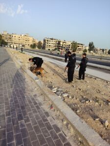 The K9 units of the General Security Directorate participate in sweeping and security operations, as trained police dog teams inspect designated Eid prayer sites in Rural Damascus to ensure the safety of worshippers and secure the festive atmosphere with the highest levels of readiness and security.