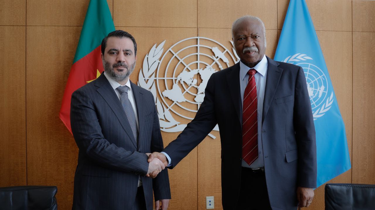 The Minister of Foreign Affairs and Expatriates, Mr. Asaad al-Shaibani, meets in New York with the president of the UN General Assembly, Mr. Philemon Yang.