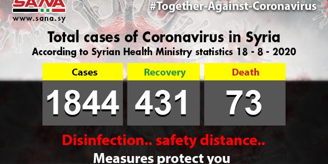 The number of Coronavirus cases in Syria reached 1844