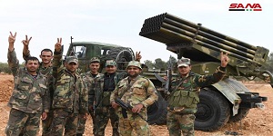 From the axis of the village of Al-Barqoum, which the army liberated on Sunday, a field officer told SANA correspondent that the army units continue to progress and achieve more victories against the armed terrorist organizations, underlining the importance of progress on the axis of the Aleppo-Damascus road.