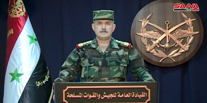 The Command reaffirmed that the Syrian army will continue to do its national duty in fighting terrorism until the entire Syria territory is liberated.