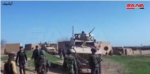 On October 24th, the Syrian Arab Army intercepted a convoy of military vehicles belonging to the American occupation forces trying to cross through the village of Damkhiya in the northern countryside of Hasakah and forced it to retreat.