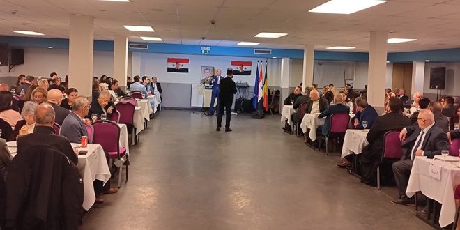 In his speech, Ambassador Ammar Al-Arsan, Head of the Permanent Mission of Syria to the European Union in Brussels referred to the role of Syrian expatriates in conveying Syria’s message rooted in history and representing it abroad through their achievements and work.