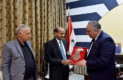 The Governor praised the bilateral historical relations between the two countries and expressed the respect and appreciation of the Syrian people to the Indian people and its leadership that rejects the terrorism that Syria is suffering in order to undermine its heritage, history and sovereignty. He also pointed to the civilization and history of India and its technical, technological and economic achievements in all fields.