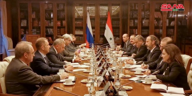 The two sides highlighted the prospects of providing an encouraging environment for value-added joint investments that serve the interests of the peoples in Syria and Russia.