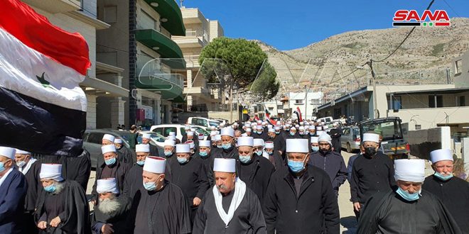 The statement said that the steadfast people of the occupied Golan embodied, through their adherence to their Syrian identity, the reality of their belonging to their homeland.
