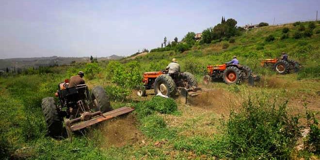 The initiative aims to plow 43,816 dunums, which is the burned lands, or about 44 percent of the total area of Al-Fakhoura village, funded by popular financial donations to which the Syrians contributed as compensation for those affected during the weeks following the wave of fires.