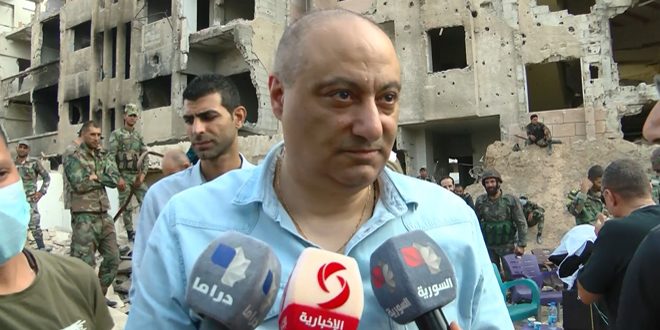 Director Basil Al-Khatib, along with a number of Syrian drama stars, continue to film the events of the feature film of ‘To the end of life’ which tells the story of terrorists who kidnapped a Syrian journalist while she covering the operations of the Syrian Arab Army in the face of terrorism.