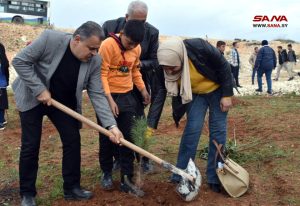 In Idlib, the Director of Agriculture Youssef Qassem said in a statement to SANA that the afforestation campaign includes planting 15 hectares of the area of forest sites and on both sides of the roads, of which 5 hectares are for patching and compensating forests damaged by fires and encroachments, and the rest is to raise the forest density. He added that the plants being planted are of two types, Pine and carob.
