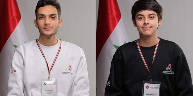 The Excellence and Creativity Commission stated that the two bronze medals were won by two students, Amin Abdul Karim Sherba, from Al-Basel High School for Outstanding Students in Damascus, and Hazem Moataz Dalati from the First Outstanding High School in Homs.