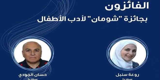 The two Syrian storywriters, Rawa’a Sonbul and Hassan Abdul Basit Al-Judi, won the second and third places in the Abdul Hameed Shoman Prize for Children’s Literature in the field of “The fairy tale” for children catergory between 4 and 7 years for the year 2020.