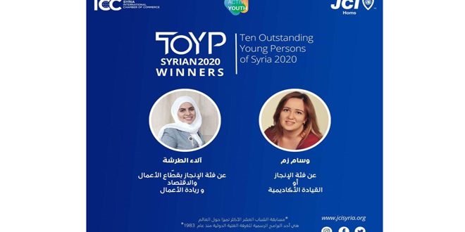 The two young women , Dr. Wissam Zam and Alaa Al-Tarsha will participate in the Ten Outstanding Young Persons ( TOYP) competition due to be held in Japan after they have won the competition organized in Homs by Junior Chamber International ( JCI ) at the national level for the year 2020.