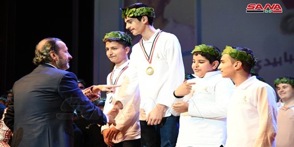 Under the patronage of Mrs. Asma al-Assad, the Excellence and Creativity Commission honored today the winners of the first 15 places in the Syrian Scientific Olympiad competitions for 2019-2020 in mathematics, physics, chemistry, informatics and biology at the Palace of Conferences in Damascus.