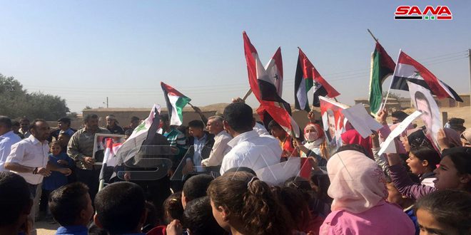 HASAKA, (ST)_Teachers and students of “Tal Hamis” school compound in Hasaka countryside on Tuesday protested against the seizure of schools and their closure by US-backed “Syrian Democratic Forces” militia.