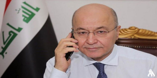 According to a statement issued by the Iraqi President’s Office on Saturday, President Salih, during a phone call from US Secretary of State Mike Pompeo, said that the “Syrian people paid a heavy price as a result of terrorism, which committed the most heinous crimes, in addition to the destructive foreign interventions.”