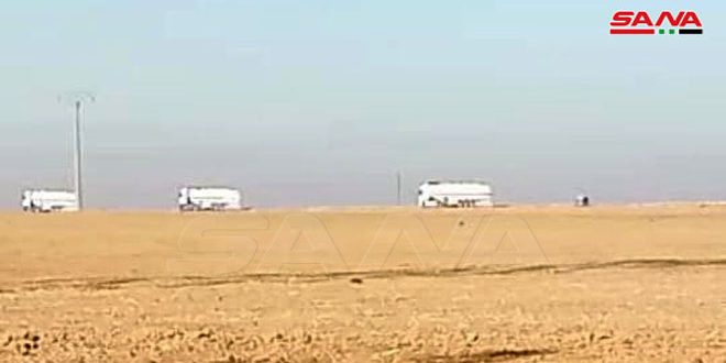 Local sources in the countryside of Al-Yaroubiyeh village in Hasaka northern countryside told SANA that a convoy of 70 US occupation-affiliated vehicles, including many tankers carrying Syrian oil stolen from the Syrian Al-Jazira region, left the Syrian territories towards the American occupation bases in the north of Iraq via Al-Walid crossing. The other vehicles were carrying several cannons and military cars including Hummer cars, the sources said.