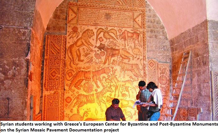 Just before the start of the war on Syria, a group of young students from the University of Damascus managed to document a large number of historic mosaics with the help of Greek experts from the European Center for Byzantine and Post-Byzantine Monuments, a non-profit organization under the purview of the Ministry of Culture. Launched in 2004, the Syrian Mosaic Pavement Documentation project was one of Greece’s most important programs in Syria before its second phase – a workshop on conservation – was violently interrupted by the war in 2008, according to Kathimerini newspaper