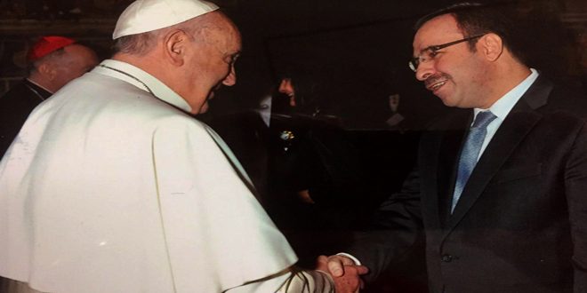 During the meeting, the Ambassador hailed the amity and continuous interest of Pope Francis to Syria in his prayers to prevail peace and stability in the country, SANA reported.