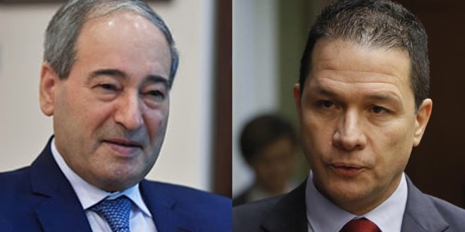 This came during a congratulatory message received today by the Minister of Foreign Affairs and Expatriates Faisal Al-Miqdad from the Minister of Foreign Affairs of the Bolivarian Republic of Venezuela Carlos Rafael Faria Tortosa on the occasion of the Syrian Arab Army Day, in which he conveyed the congratulations of his country, government and people, on this glorious occasion.