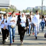 Organized by Damascus Governorate in cooperation with the General Federation of Sports, the marathon started at Umayyad Square and reached al-Jala’a Sports city where the participants gathered and threw colored objects in expression of their love to their homeland.