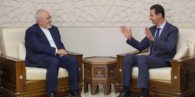 DAMASCUS, (ST)- President Bashar Al-Assad and Iran’s Foreign Minister Javad Zarif stressed in a meeting on Monday that the pressure put on Syria and Iran by the western countries won’t prevent the two countries from pressing ahead with defending their principles and the interests of the peoples in the two countries as well as the security and stability in the entire region.