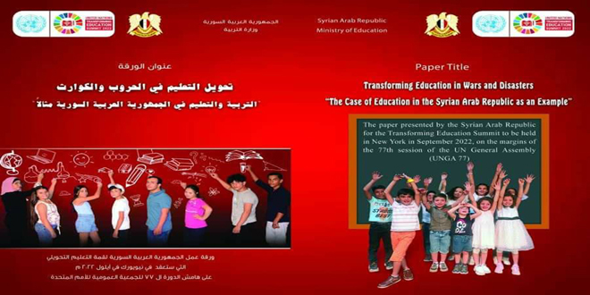 Based on the invitation addressed to President Bashar al-Assad to participate in the Summit on Transforming Education from United Nations Secretary-General Antonio Guterres, Syria will participate in the summit with a government educational delegation headed by Dr. Darem Tabbaa, Minister of Education and head of the Syrian National Commission for UNESCO.
